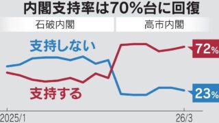 嫌儲 高市内閣支持率、3ポイント上昇72% 日米首脳会談「評価する」65% 日経世論調査