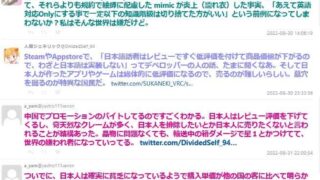 嫌儲 海外「日本人はレビューで低評価ばかりつける。面白いものは褒めず文句ばかり書く。性格の悪いゴミ民族😖」