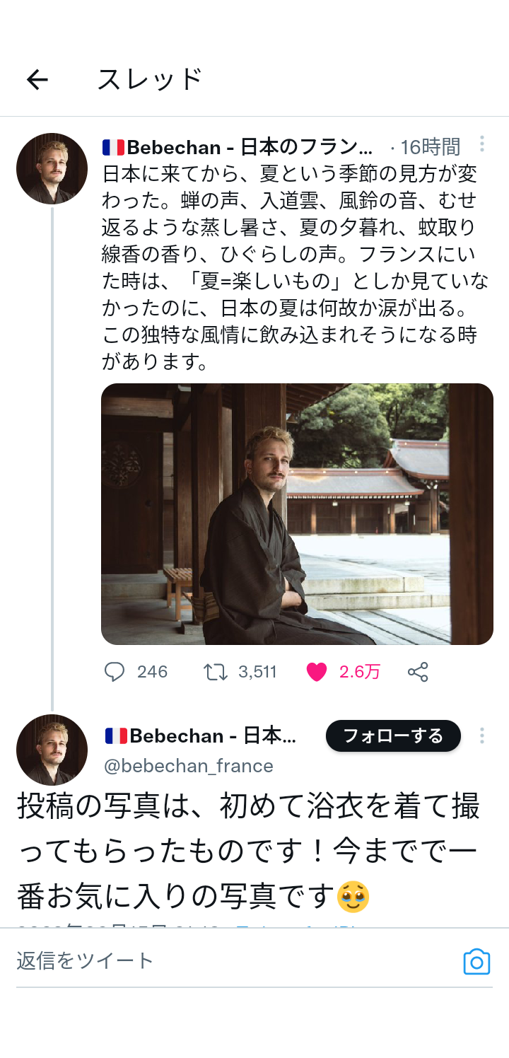 白人男性「日本の夏は何故か涙が出る。この独特な風情に飲み込まれそうになる時があります。」