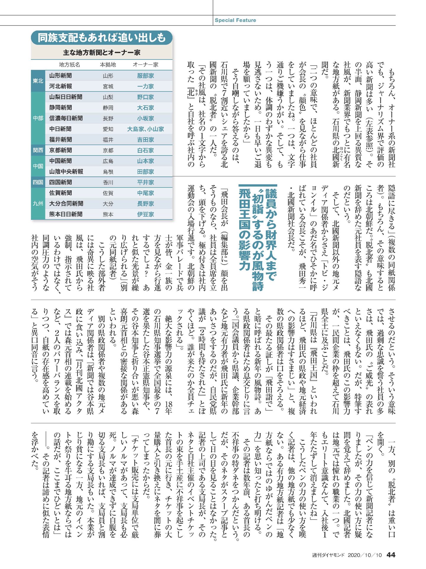 新聞社が政財界、地域社会に影響あるでしょ山新の服部や北国新聞の飛田や香川県の四国新聞の平井みたいに