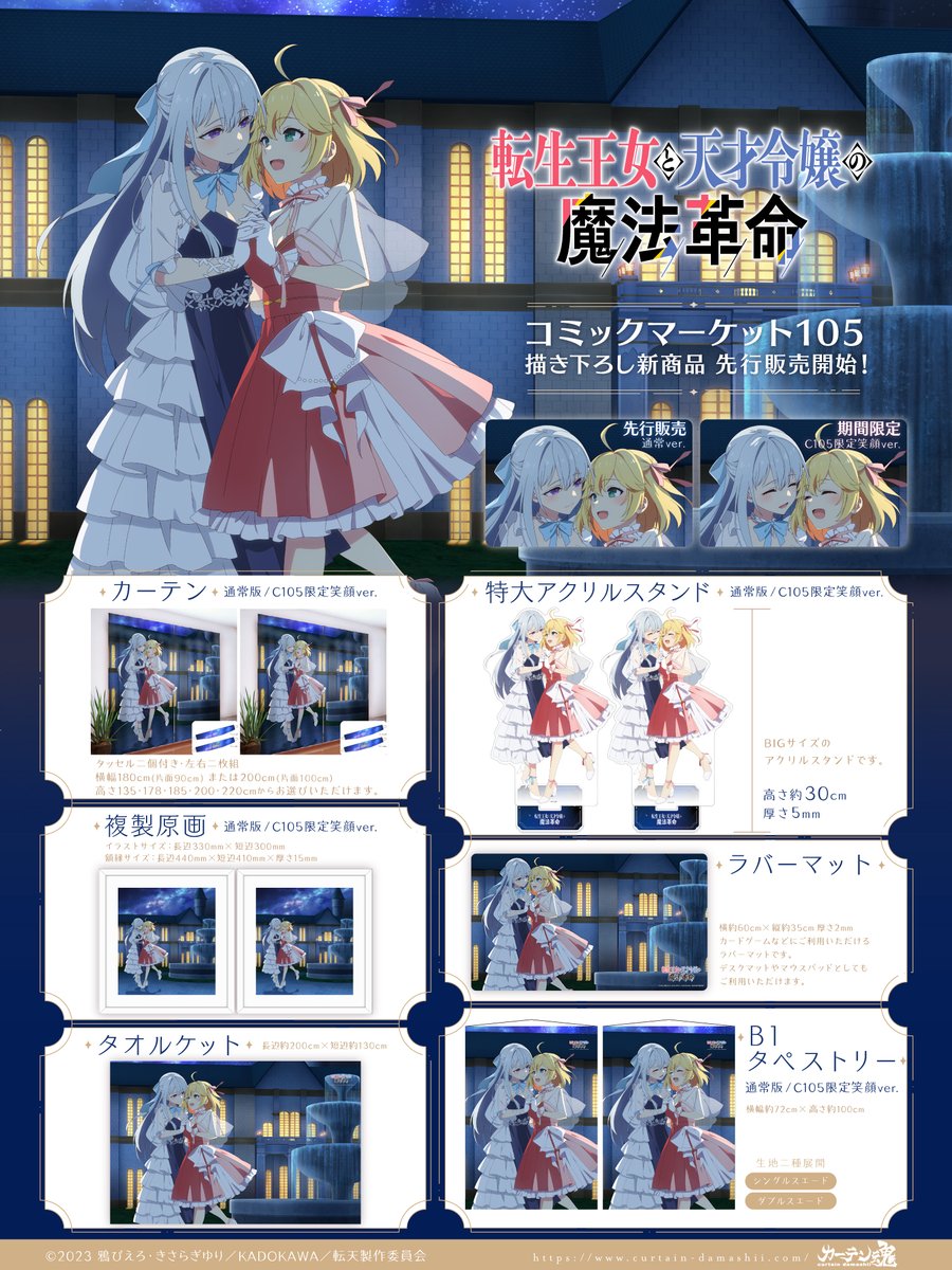 「転生王女と天才令嬢の魔法革命」アニスとユフィが星空の下で優しく見つめ合うイラストのカーテンが発売。尊くてキュンキュンするぞ