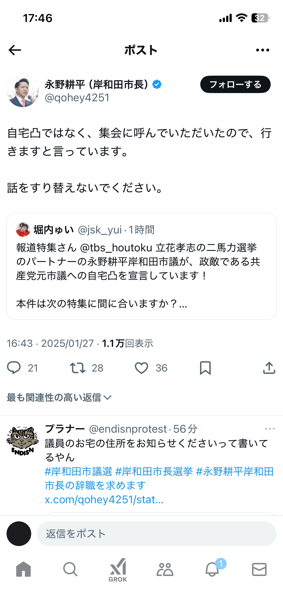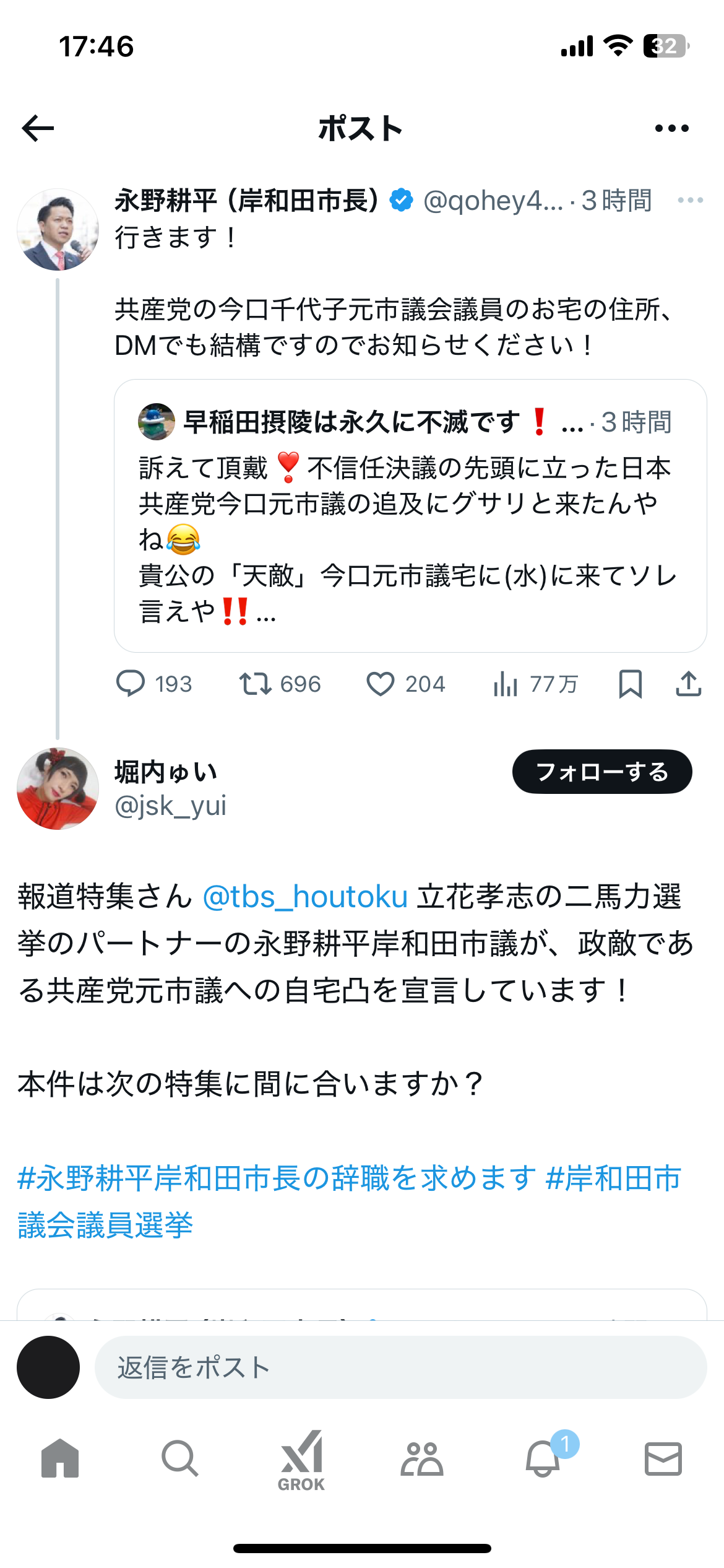 そういや、立花は岸和田で街宣やってガチギレされてたな。キレてる人らの話し言葉で地元民だってわかるってレスしてた人がいたが