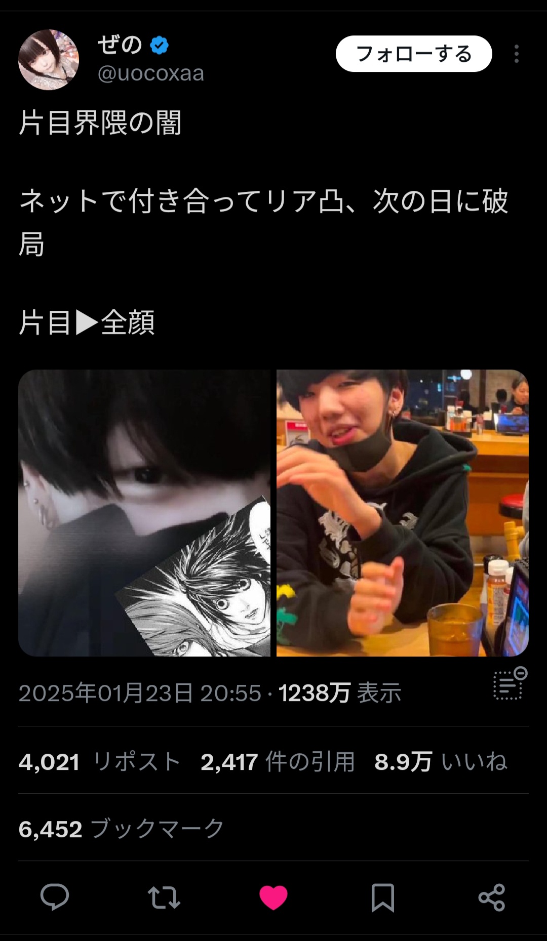 片目界隈とか勝手に言葉作るなと調べたらすでにあんのな