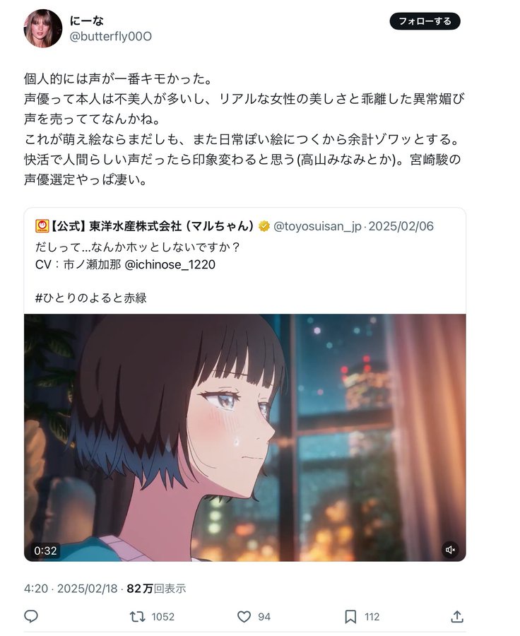 フェミニスト「赤いきつねCMで“声が一番キモかった”“声優って不美人が多い”」と女性声優さんを中傷