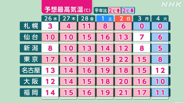 各地で3月並みの暖かさ 日曜ごろには5月並みも 雪崩に注意