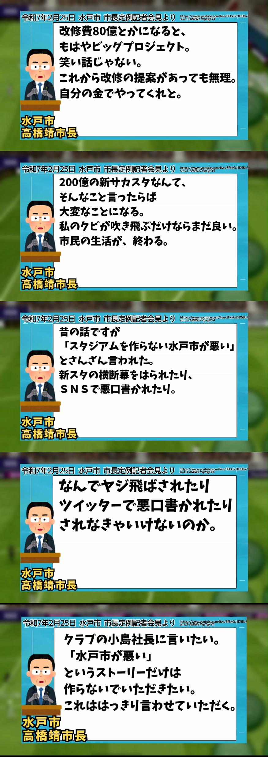茨城県の水戸市長、J2水戸にとんでもない暴言「新スタジアム(200億円)も改修(80億円)もご自由に。ただ市は1円も出しません」