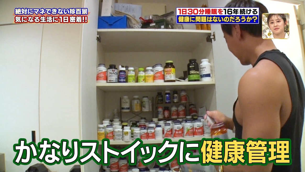 【動画】 1日30分睡眠を16年間続けるショートスリーパー男が摂取してるサプリメント一覧www お前らも参考にしろ
