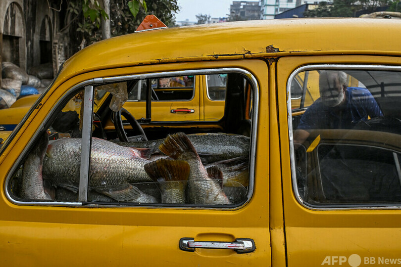 【今日の1枚】トランクに魚を詰め込んで市場に向かうタクシー インド