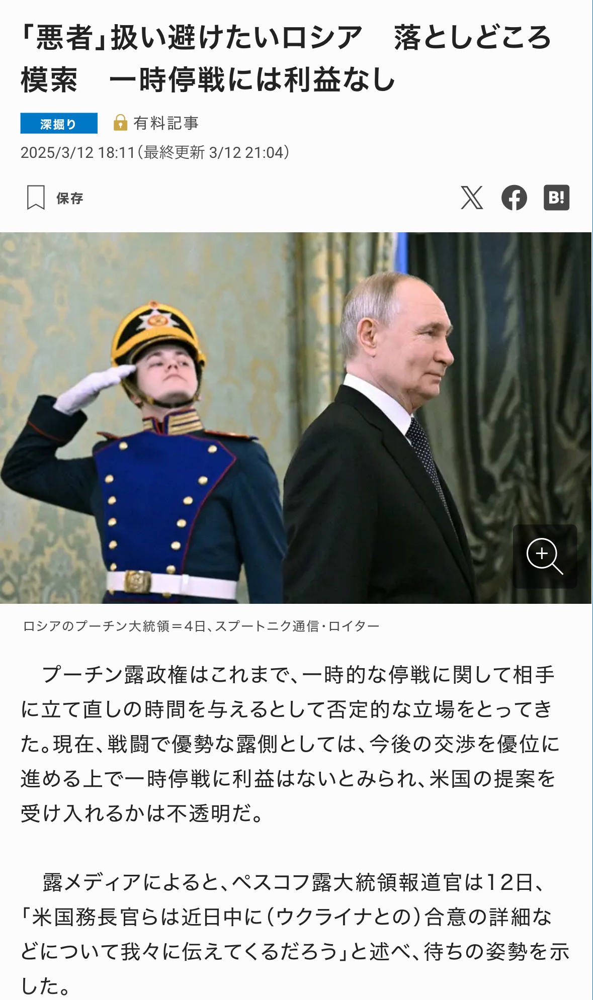 ひとまずロシアには相当お土産を用意しなけりゃ停戦しないでしょ