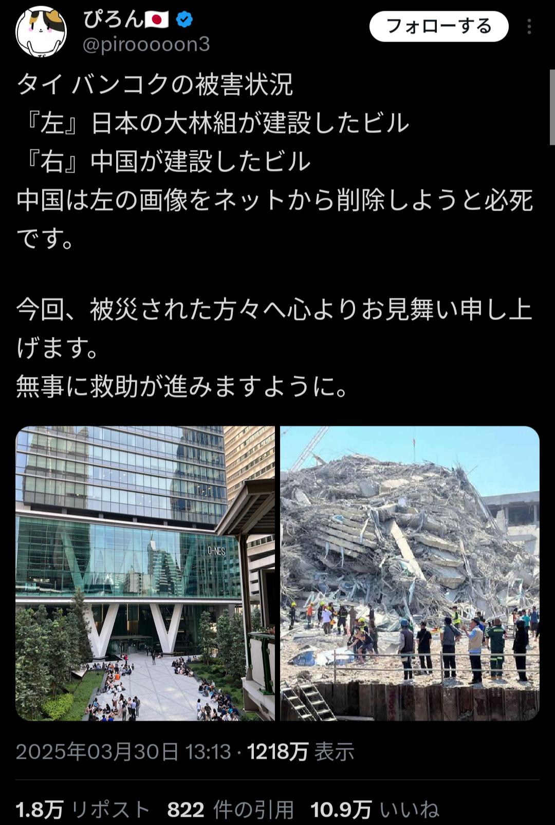 長周期地震動とはいえ、バンコクの震度は3あるかないからだから、大林どうのこうのより、脆すぎる