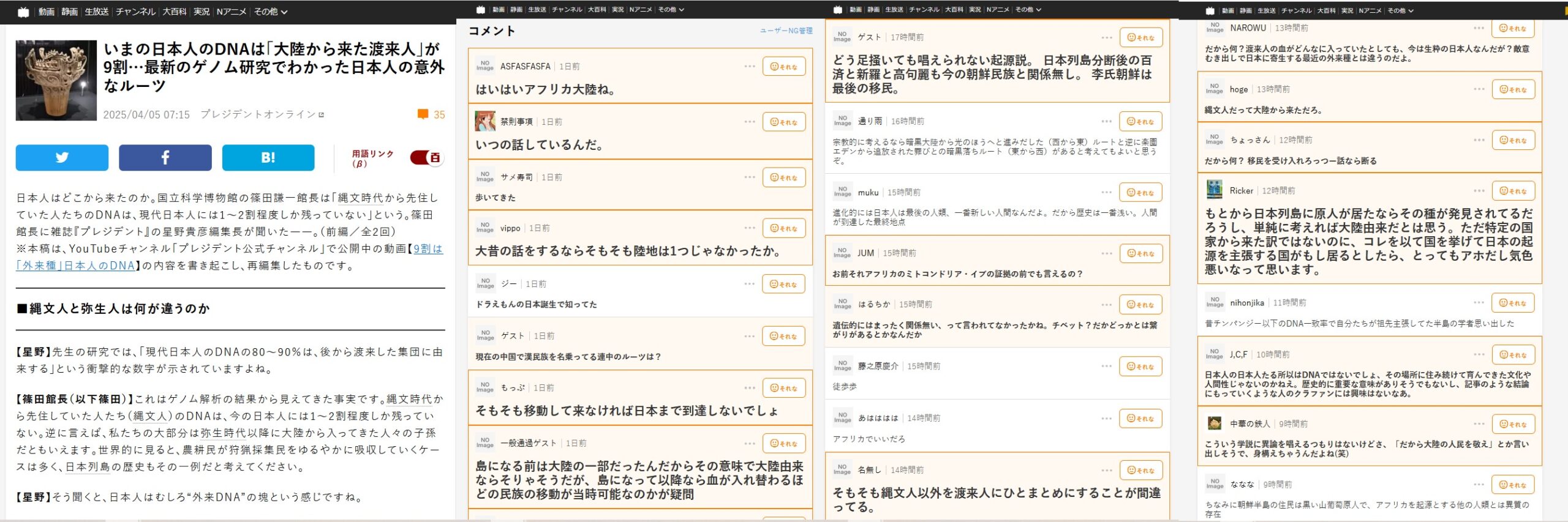 ネトウヨは顔で日本人と朝鮮人を見分けられると思ってるからDNAレベルで近縁と言われると困るんよ