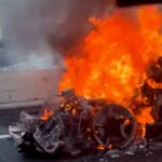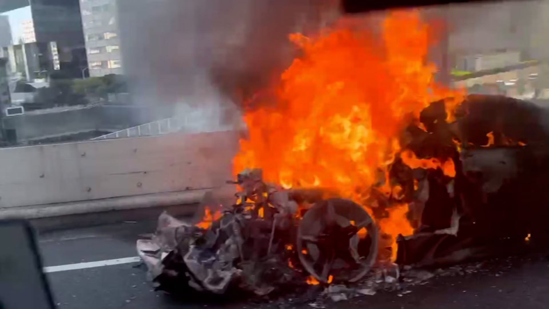 首都高でフェラーリ炎上、エンジン部分から出火の可能性