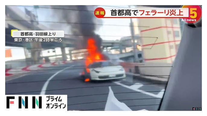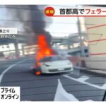 【速報】首都高でフェラーリ炎上「車が燃えている」運転手自ら通報…エンジン部分から出火の可能性 首都高速羽田線上り浜崎橋JCT付近
