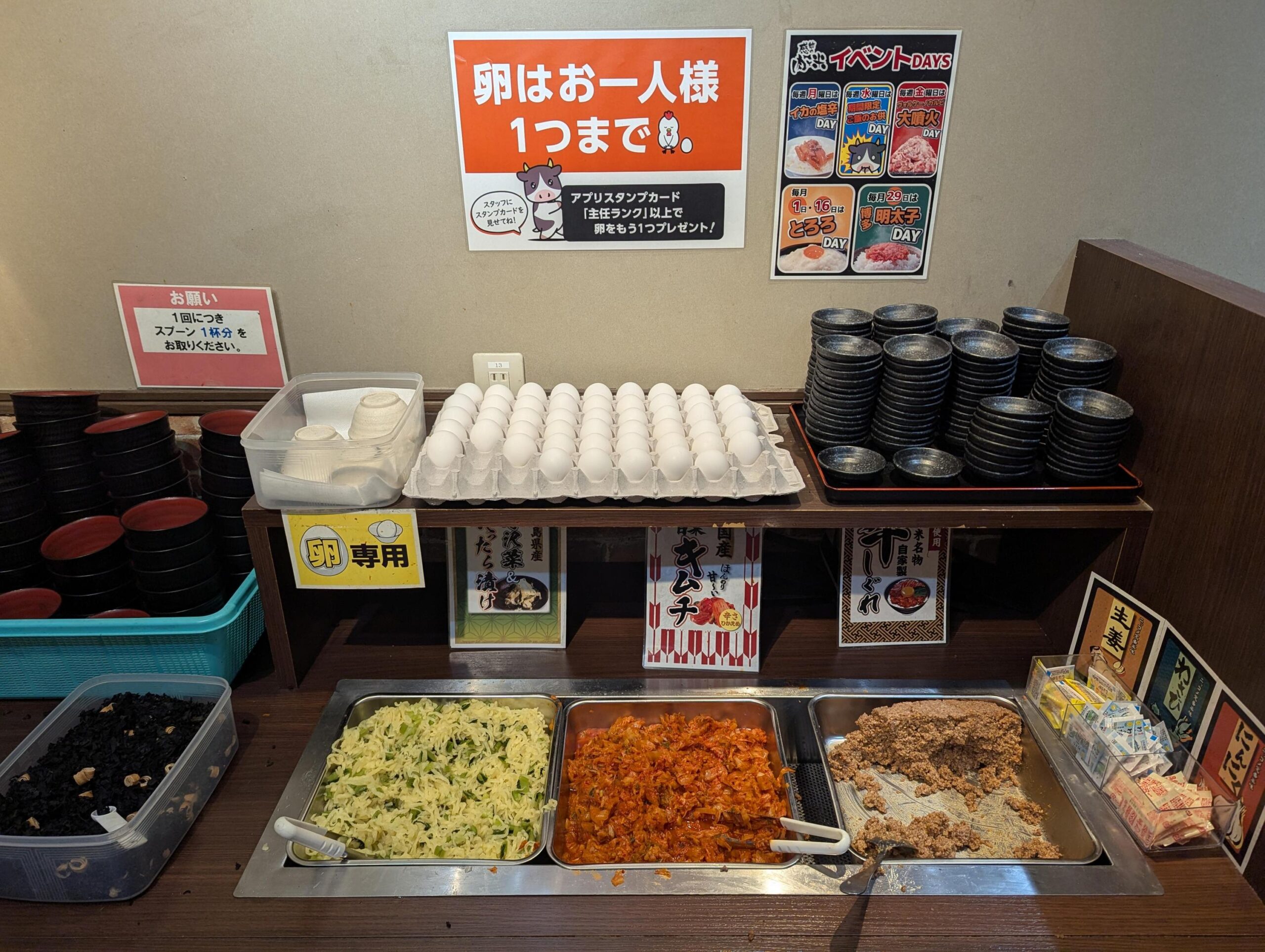 ライスおかわり自由の店はやよい軒とか吉野家とか他にもあるけどここは複数のごはんの友もおかわり自由なのが画期的