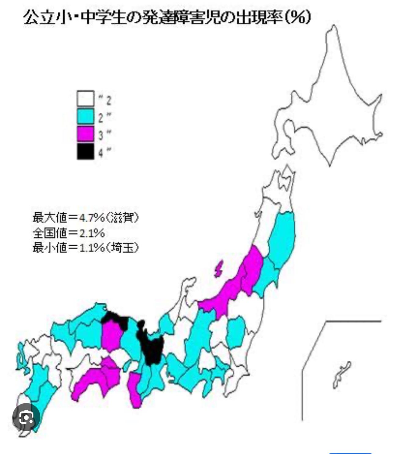 それでも障害児がおおいのは西日本だというのは覆らないので