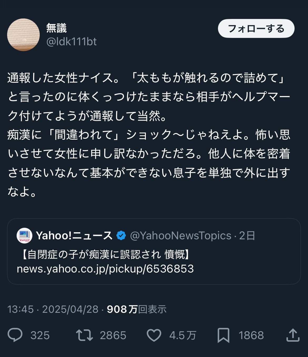障碍者は外に出すなとか言ってるぞこいつ - 30 : 2025/04/30(水) 20:47:23.43 ID:dCH2bRCK0