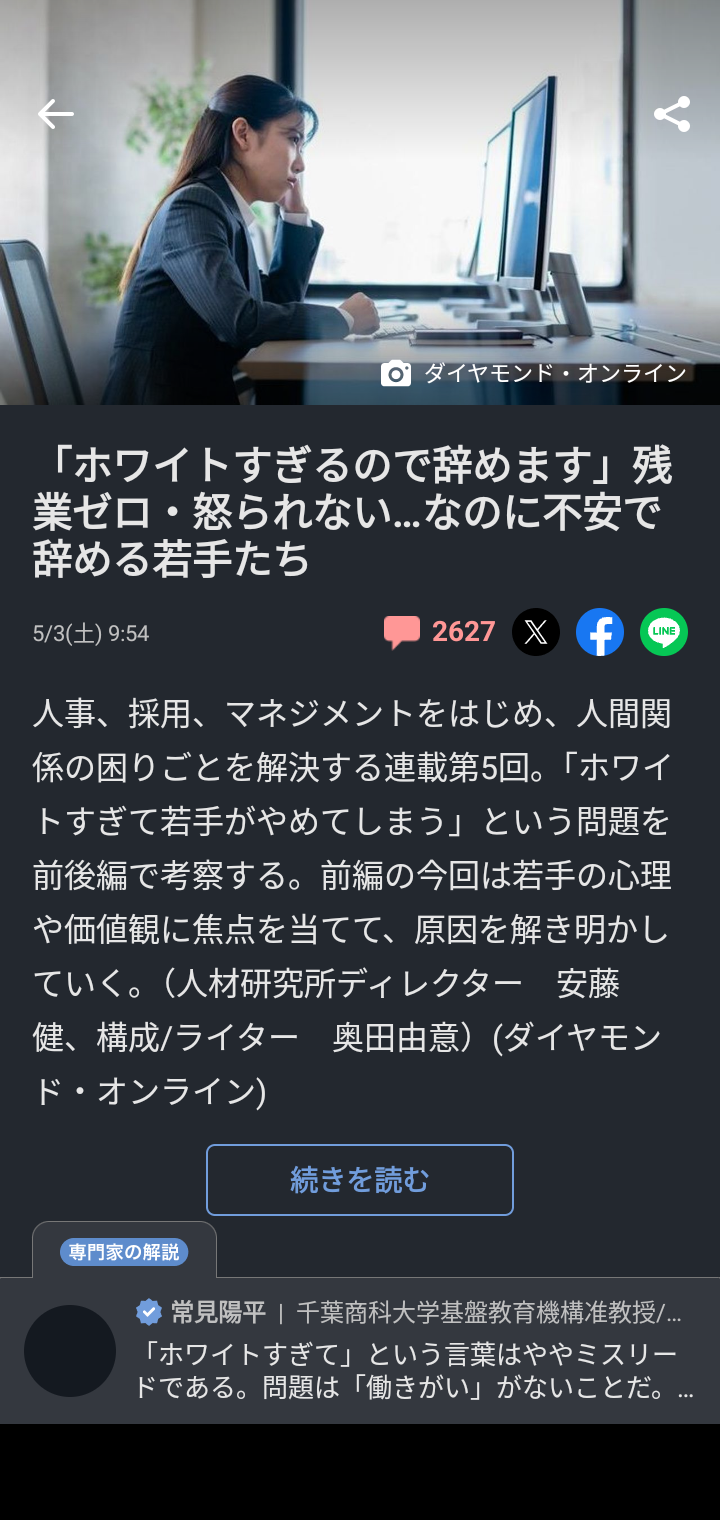 新入社員「ホワイトすぎるので辞めます。」→社会問題に