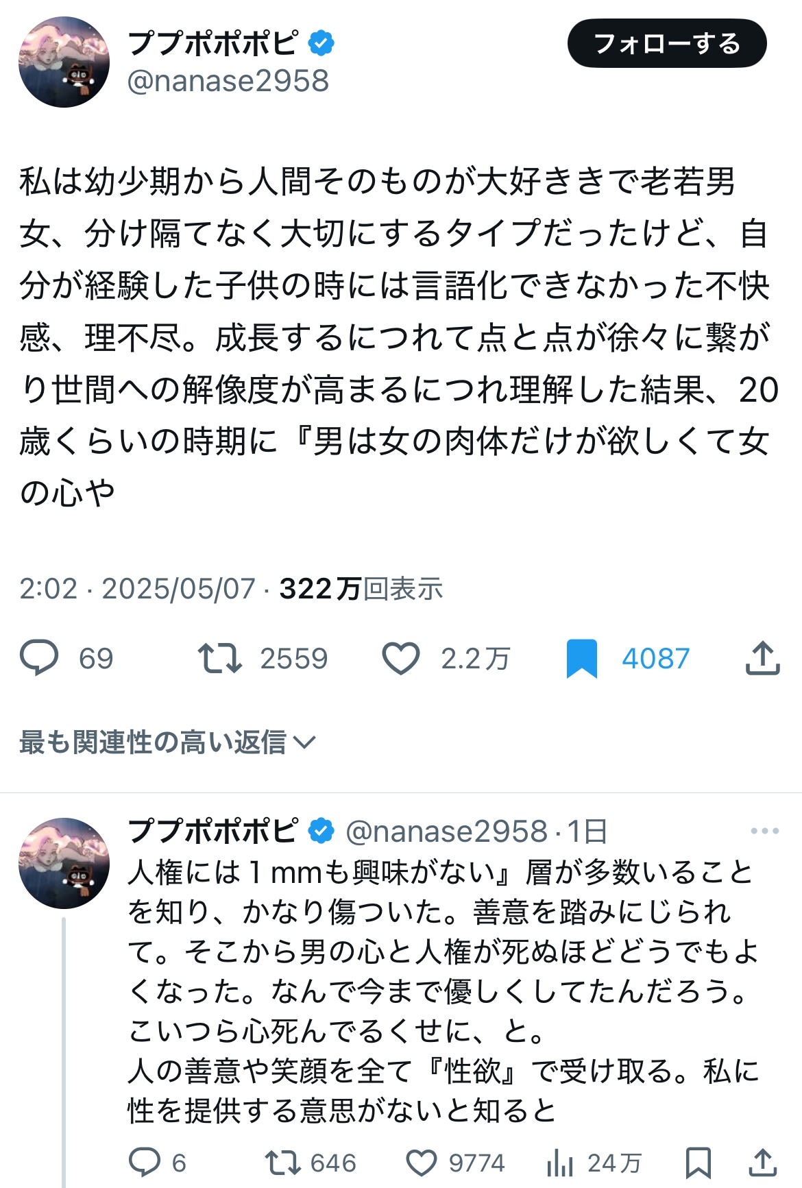 単に了見が狭いだけのミサンドリストでしかねえわ - 51 : 2025/05/08(木) 21:40:58.71 ID:dq4pERRW0