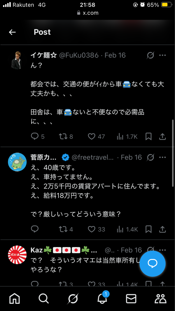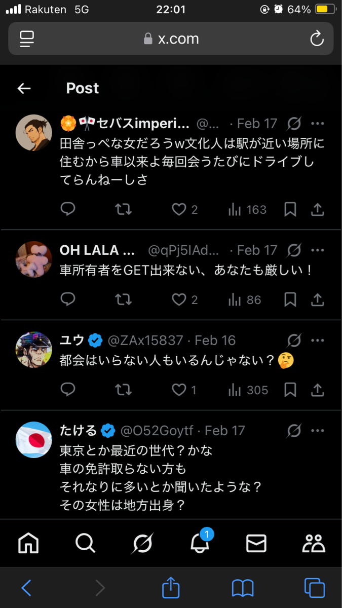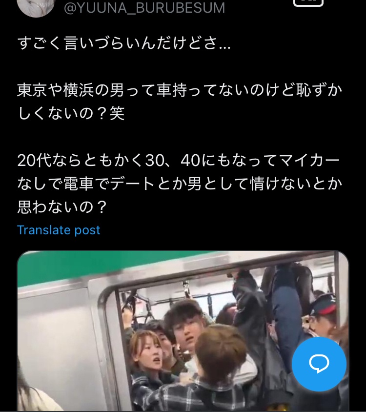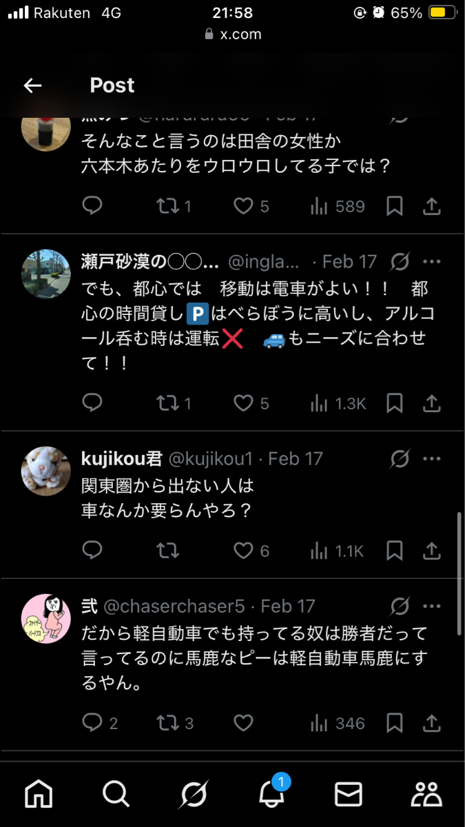 東京や横浜の男って車持ってないのけど恥ずかしくないの?