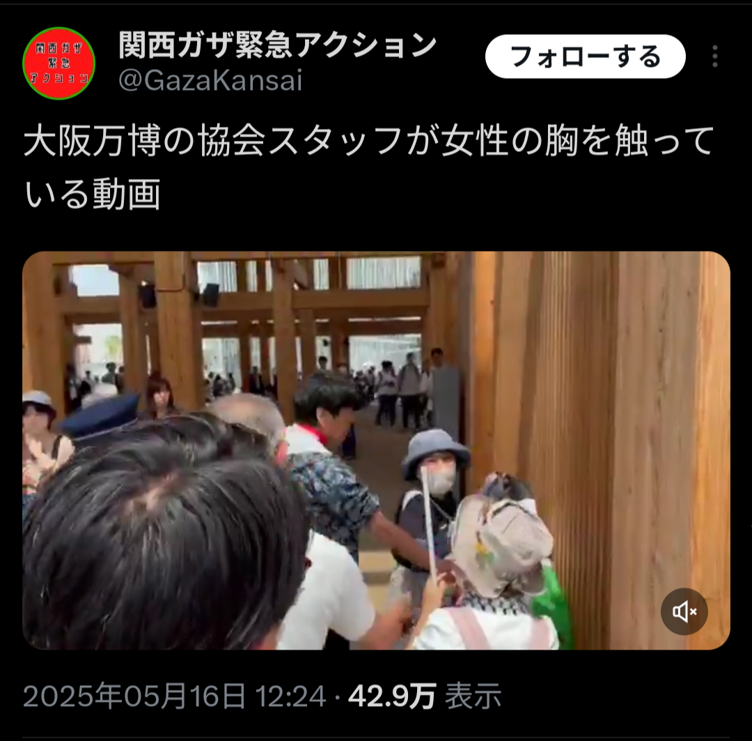 【動画あり】大阪万博の協会スタッフが女性の胸を触っている動画が拡散されている模様