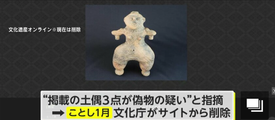 文化庁が運営する各地の文化財などを紹介するサイト「文化遺産オンライン」。掲載されていた土偶3点について、外部から偽物の疑いがあると指摘があり、文化庁が2025年1月にサイトから削除していたことが分かった。
