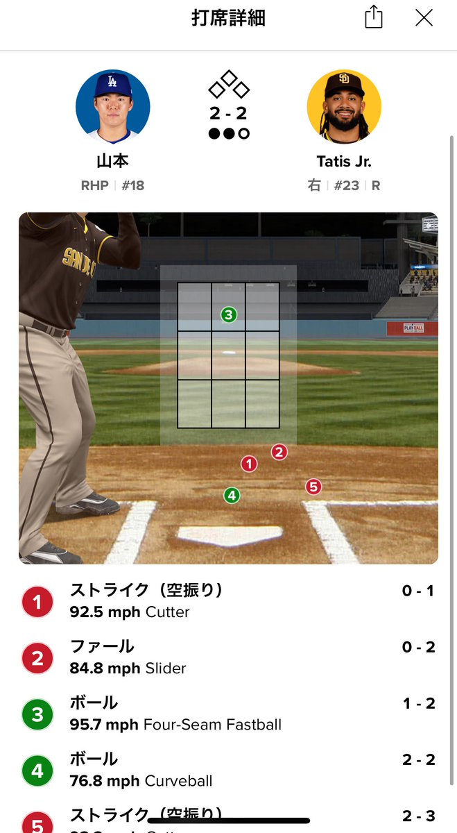 https://news.yahoo.co.jp/articles/f9b364a1f11158ab257f3a4740f484f6bbacd192続くタティスも2球で追い込み、