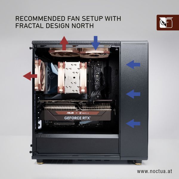 2024年にNoctuaのNOULEDGE CENTREにて投稿されたエアフローガイドの「上面ファン2つの前方側を吸気、背面側を排気とするのが適している」という記述について検証したもので、