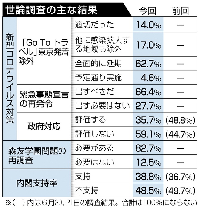 不支持率は前回調査(62%)から1ポイント減の61%だった。