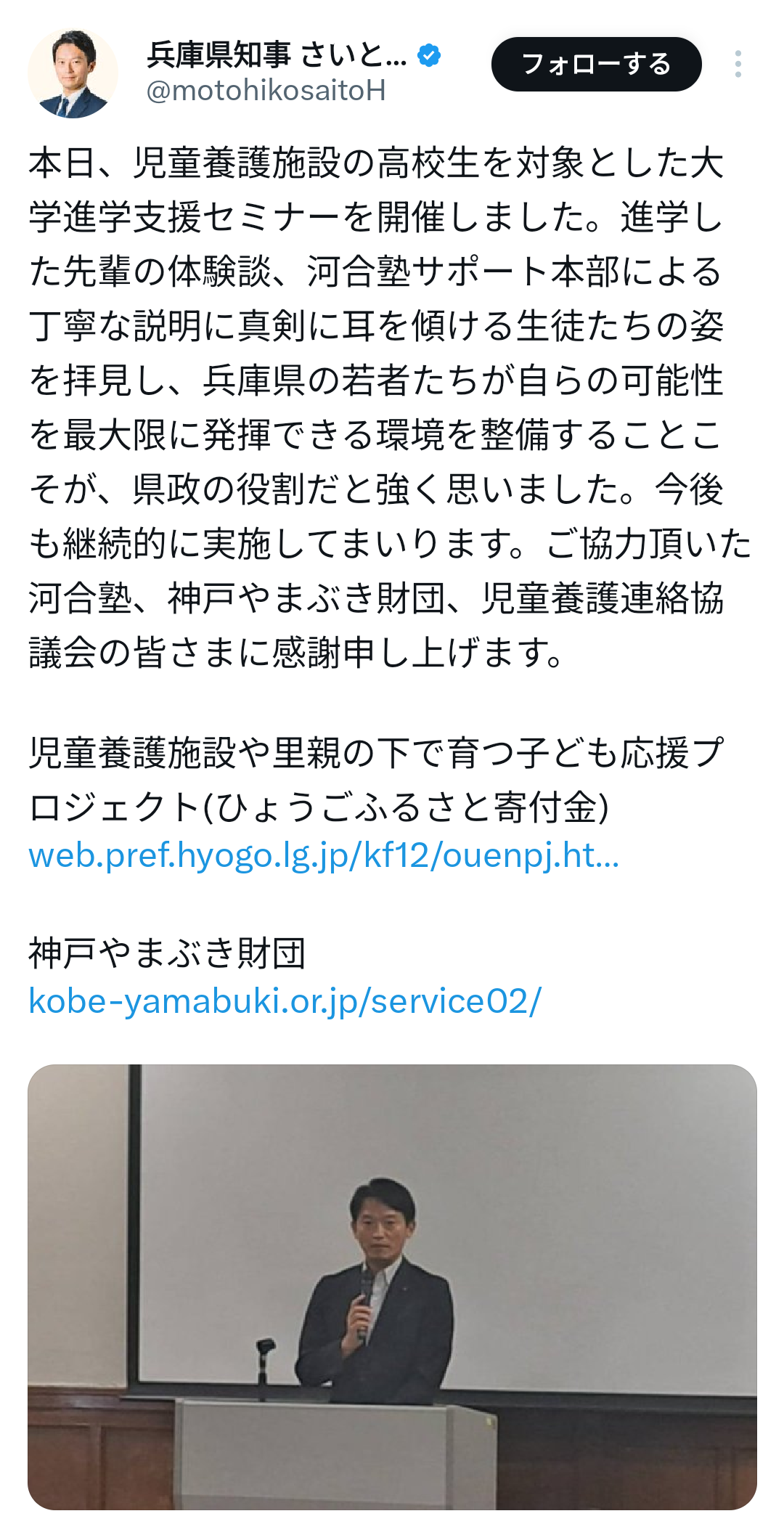 兵庫県斎藤知事、天下り規制で浮いた税金を虐待家庭や両親のいない家庭で育った子どもの支援に回してしまうwwwwww