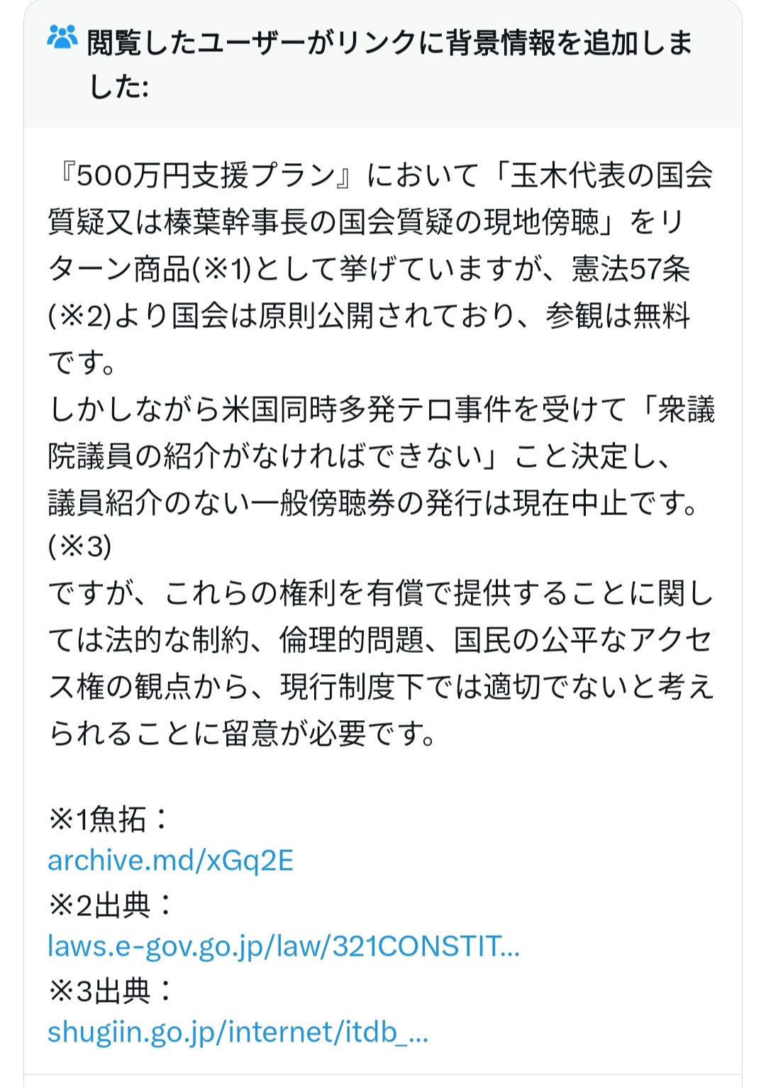 国民民主党、玉木と榛葉の国会質疑を傍聴出来る権利を500万円で販売してしまう