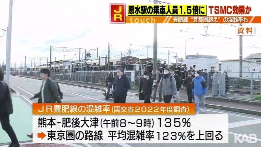 TSMCなど半導体関連企業の集積で、通勤・通学時間帯の混雑が常態化しているJR豊肥線。その混雑度は、東京の山手線並みだということです。