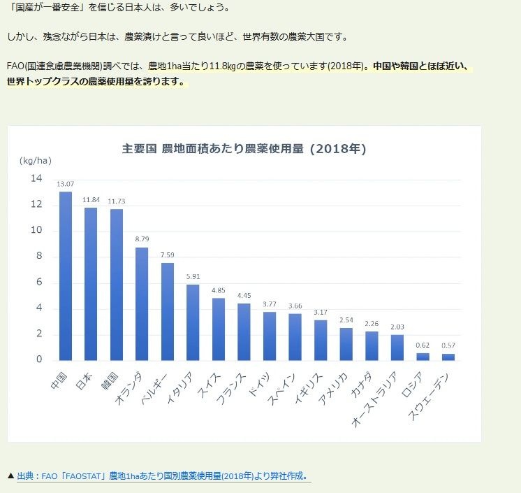 怖いか、わが国の農薬量が
