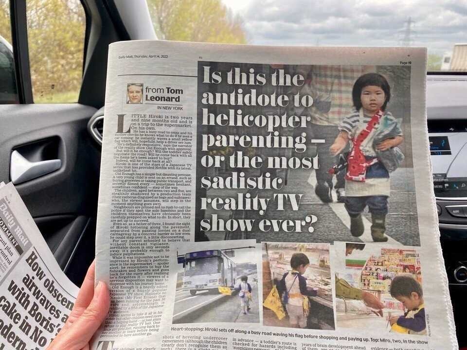 左派リベラル系の新聞、ガーディアンの番組評(4月7日付)を見ると、見出しが「『はじめてのおつかい』:幼児を公共交通機関に置き去りにする、日本のテレビ番組」である。