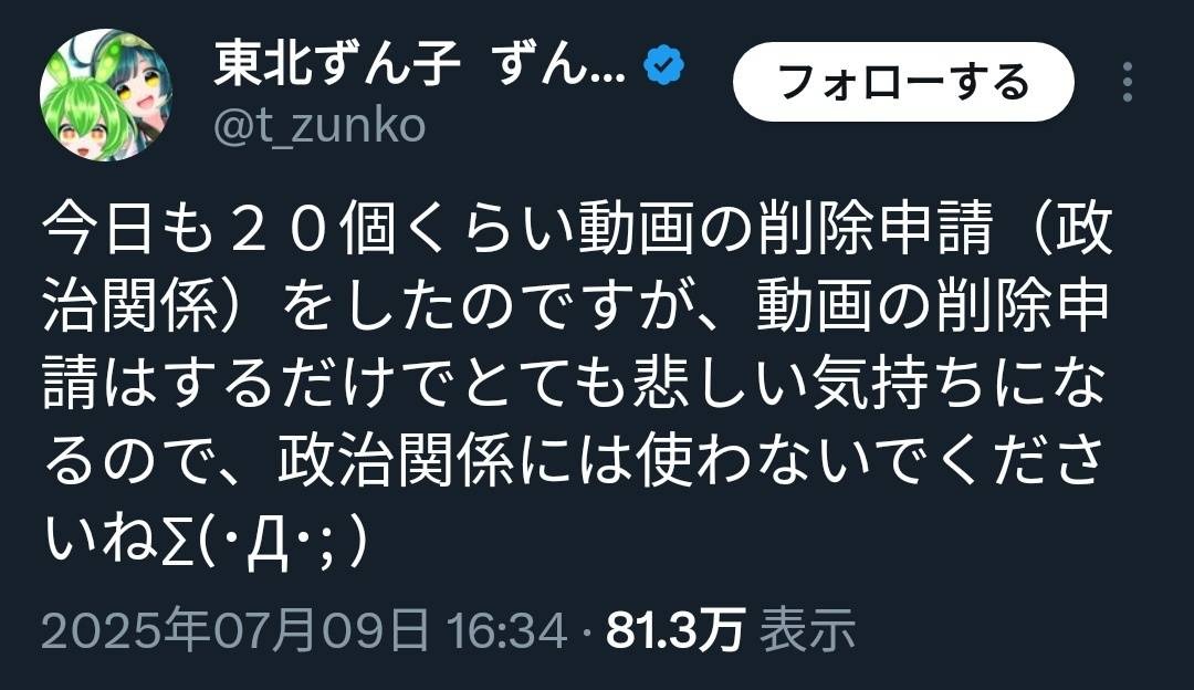 なぜ政治利用するのだ?ずんだもんは政治が嫌いなのだよ・・・