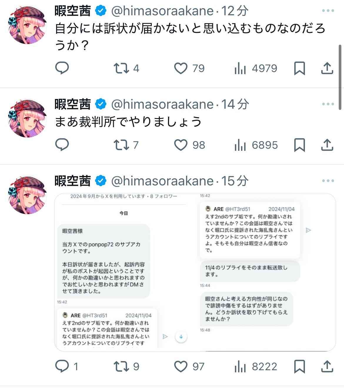 暇アノンが暇空に訴えられてたんだ