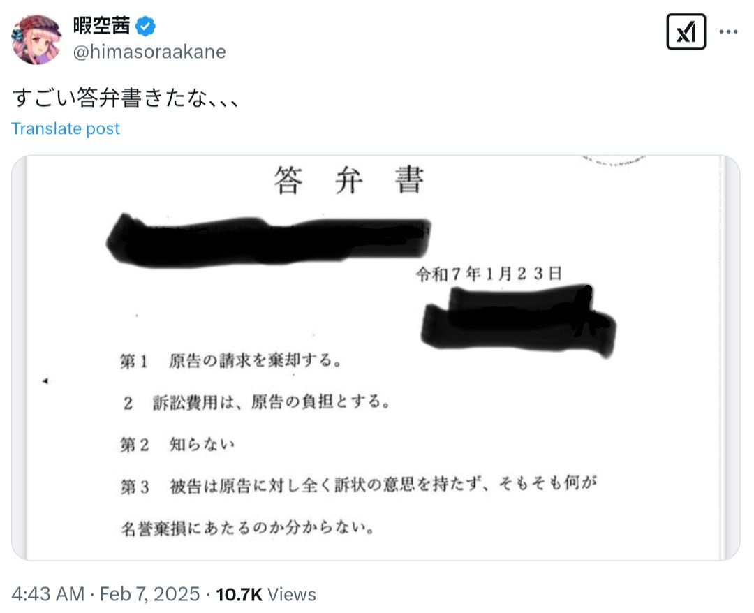 すごい答弁書に負ける最強弁護士軍団w