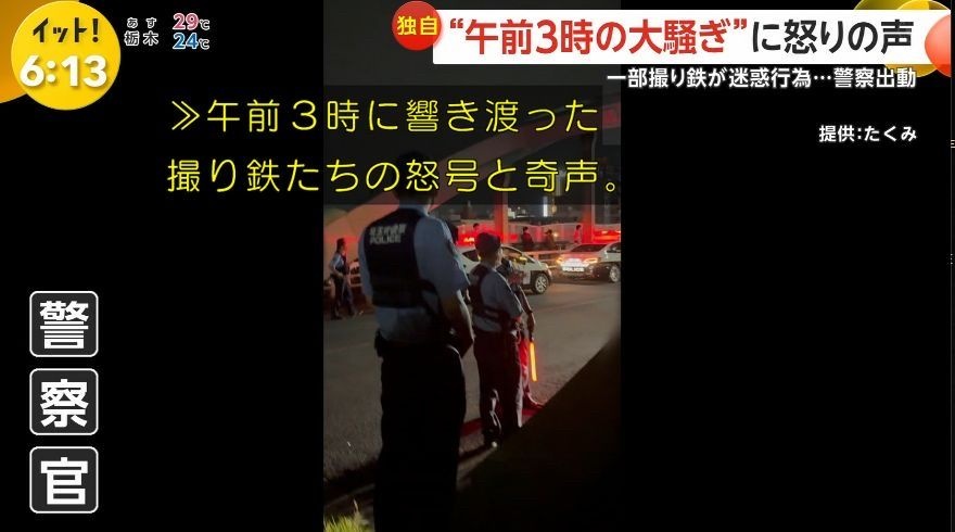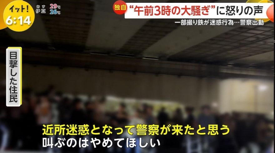 騒ぎの一部始終を目撃した近隣住民は、「珍しい電車が来て(鉄道ファンの)みんなが興奮しすぎて、声を出しすぎて、近所迷惑となって警察が来たと思う。叫ぶのはやめてほしい」と話しました。