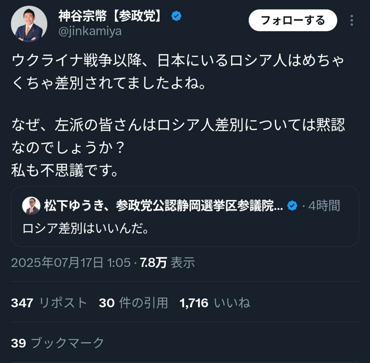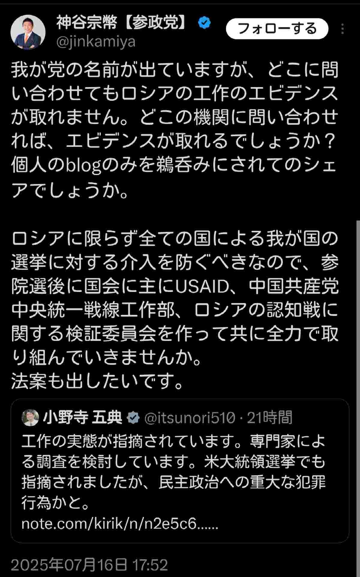 ロシアや中国からしたら分断を煽ってくれる参政党は都合は良い
