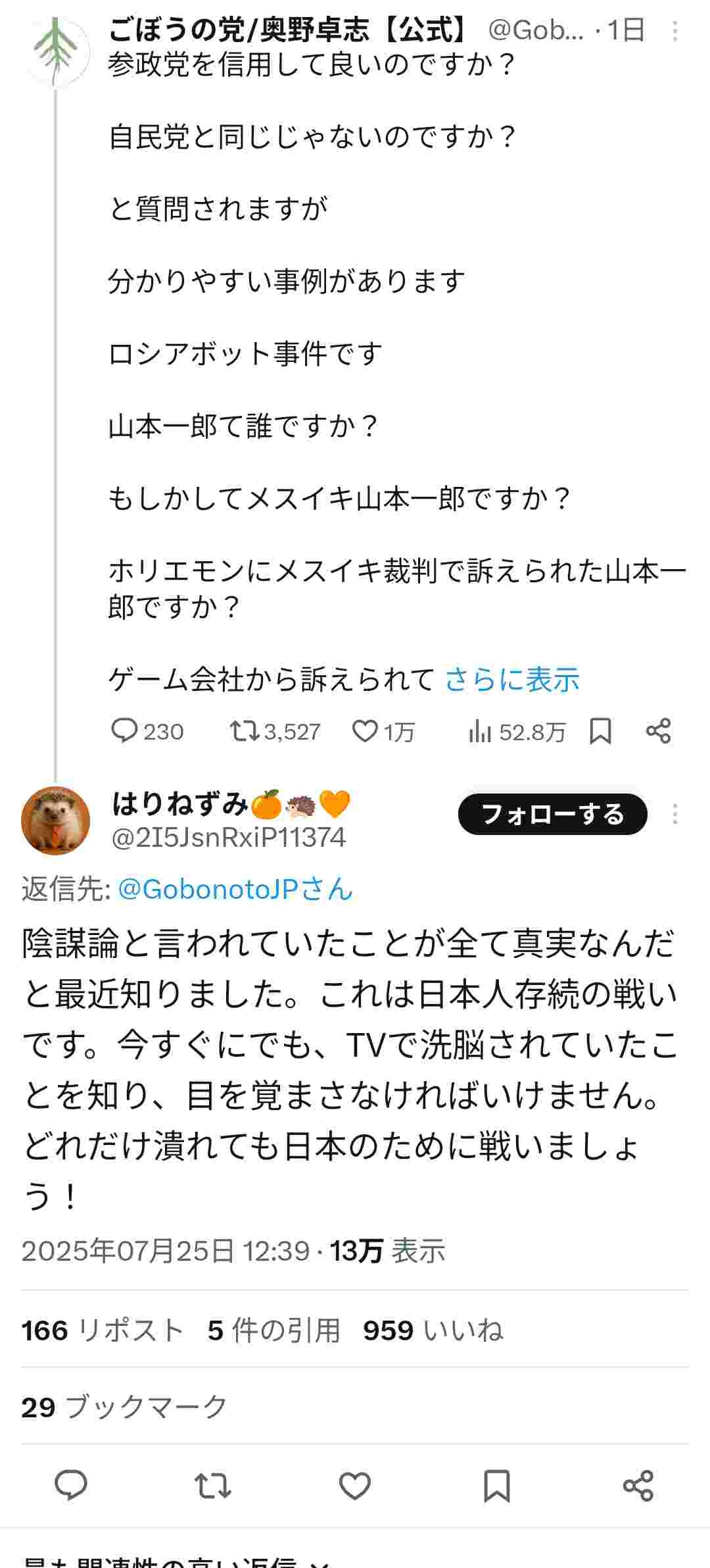 参政党がロシアと繋がっていたのは陰謀論じゃないしな