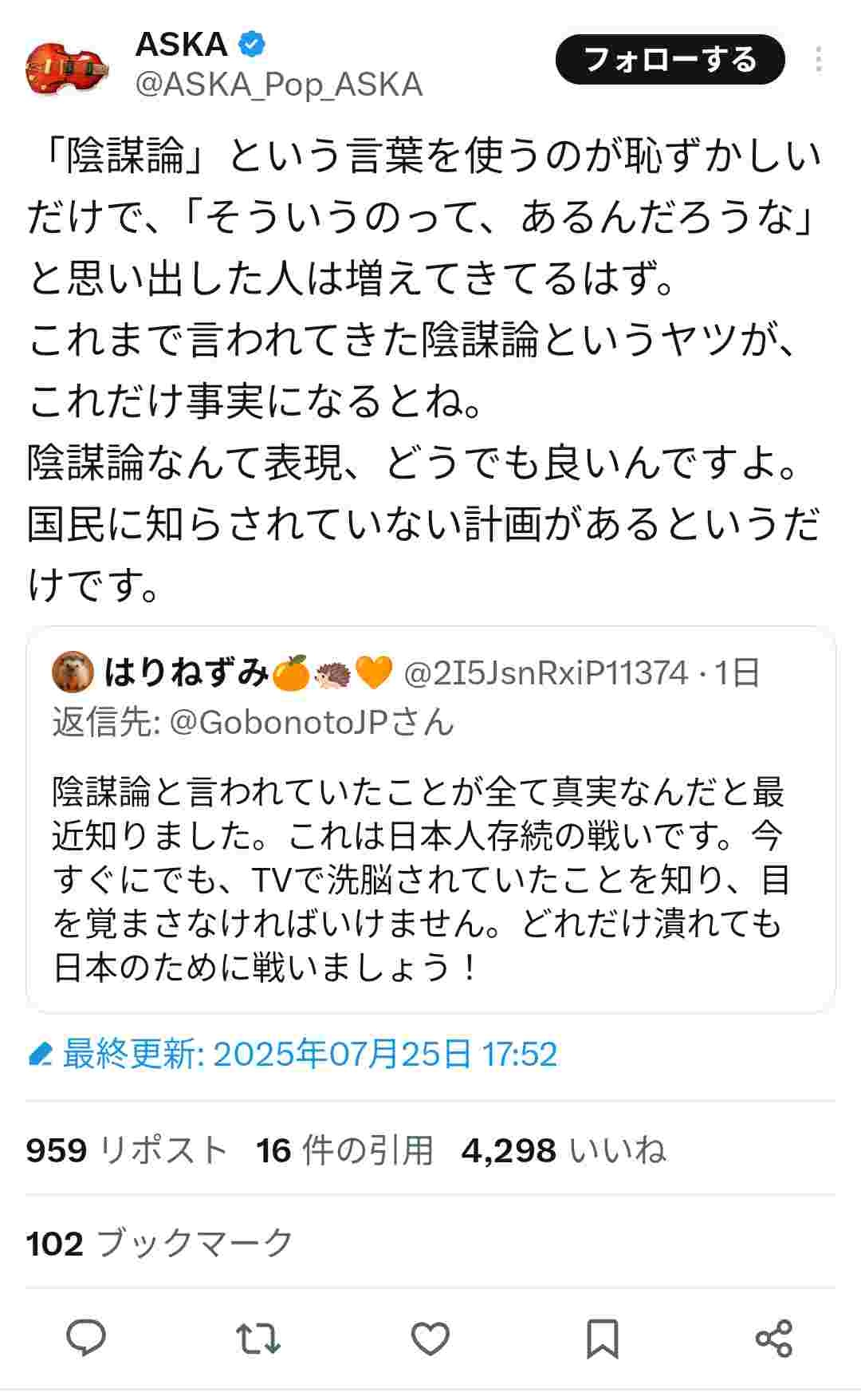 岩マンを見てまだASKAがおかしいと思えるヤツおるんか?