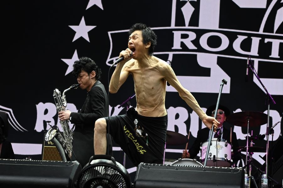 力強くソウルフルなシャウトで聴衆を魅了したヒロトは「バイクで来たやつら、気をつけて乗れよ」。司会はその後「骨折」を押しての出演だったと明かした。