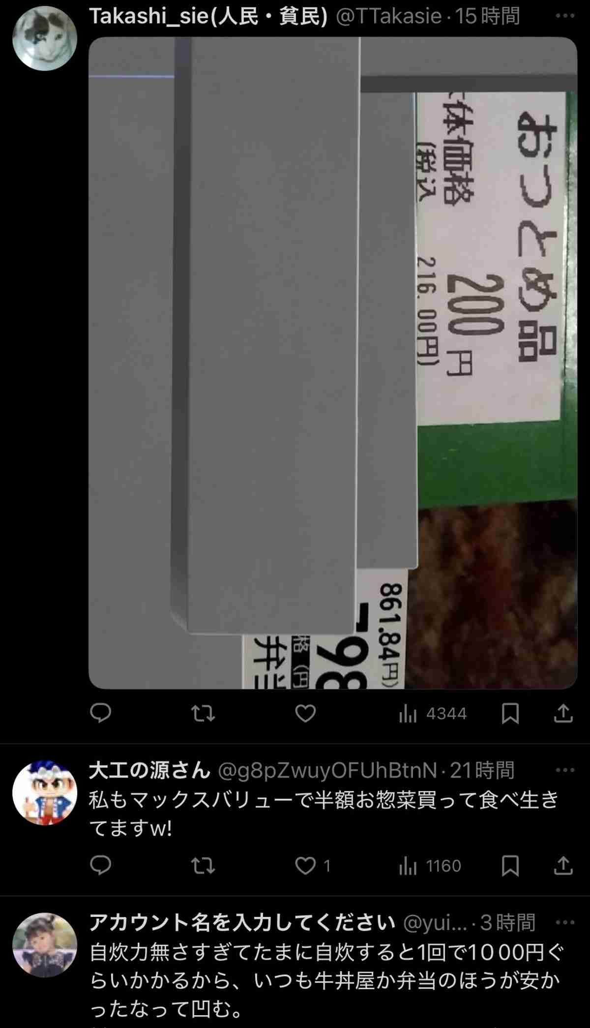【画像】日本人さん、ガチでこの程度のものしか食えない貧困に陥っていた… そりゃ「私が貧しいのは外国人のせい!」と声上げますわ