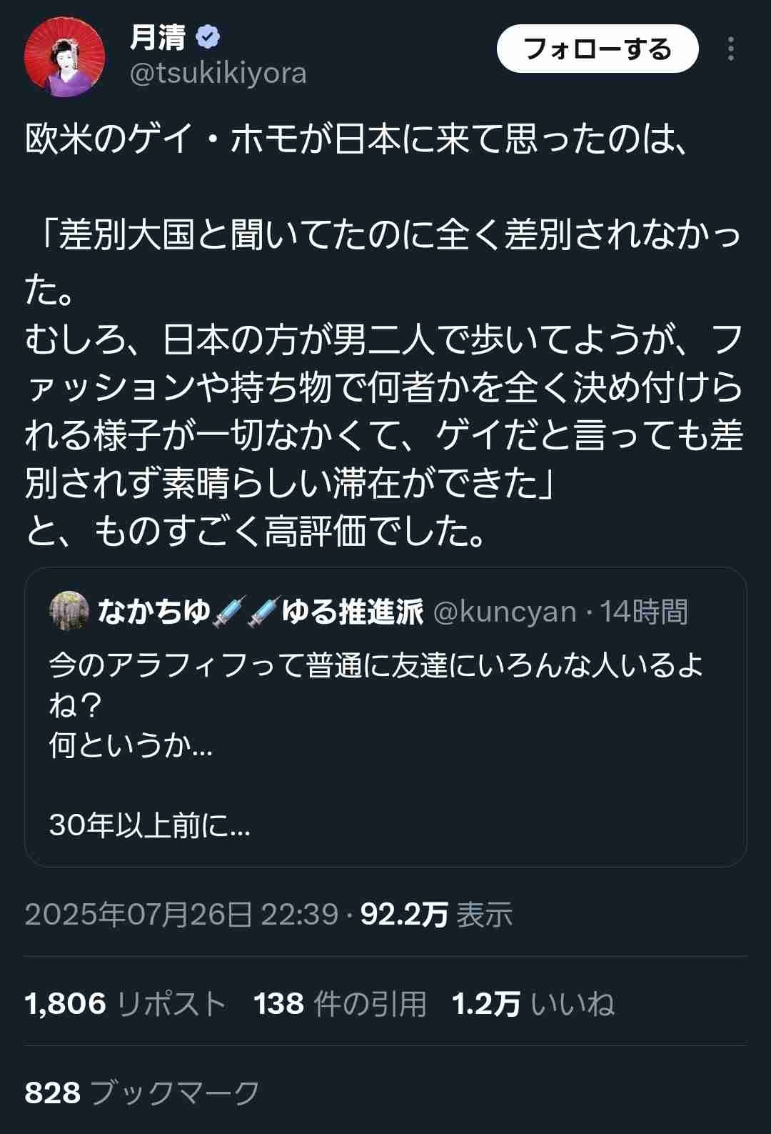 逆に日本人が何故ここまでゲイに寛容なのか分からんレベル