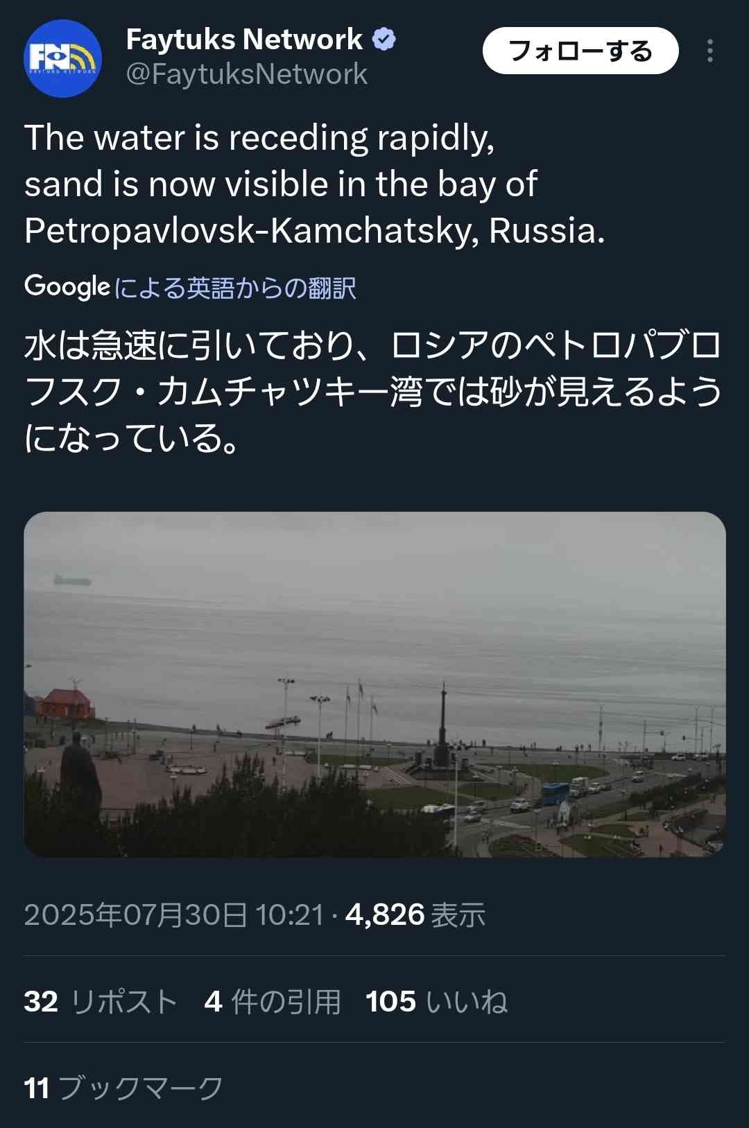 ロシアでは地震津波対策が周知されてないんだろうな…😓