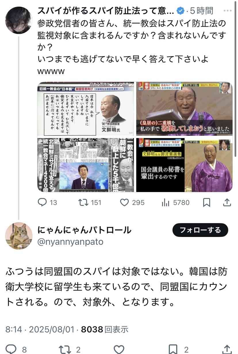 やっぱ統一教会信者がスパイスパイ言ってたのか