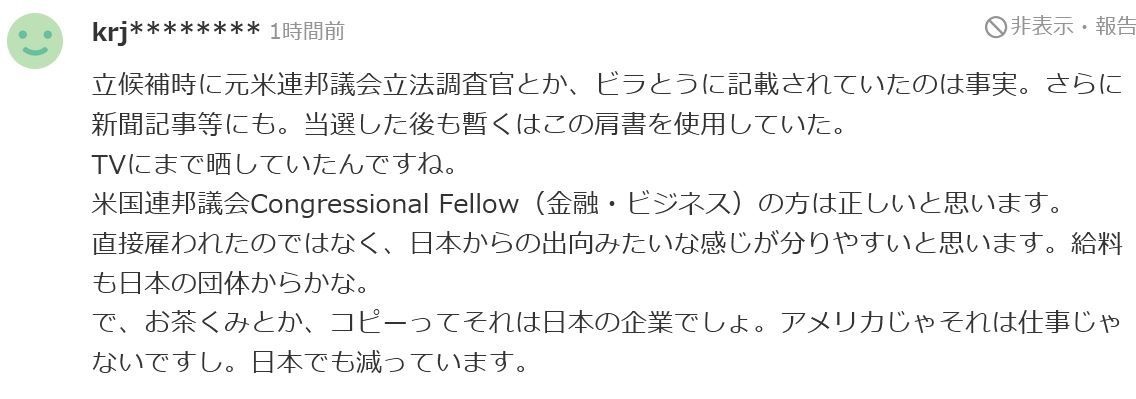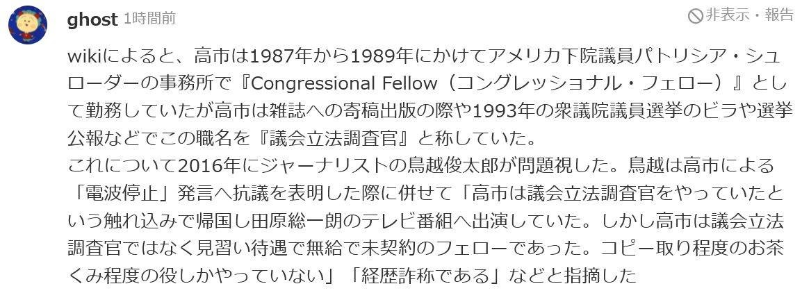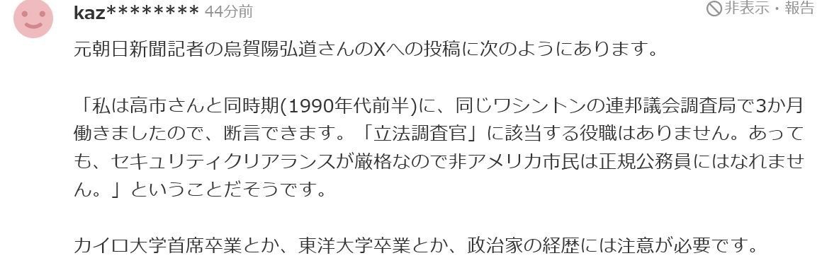 高市早苗「わたしは米連邦議会立法調査官!」 ただのお茶くみだった。