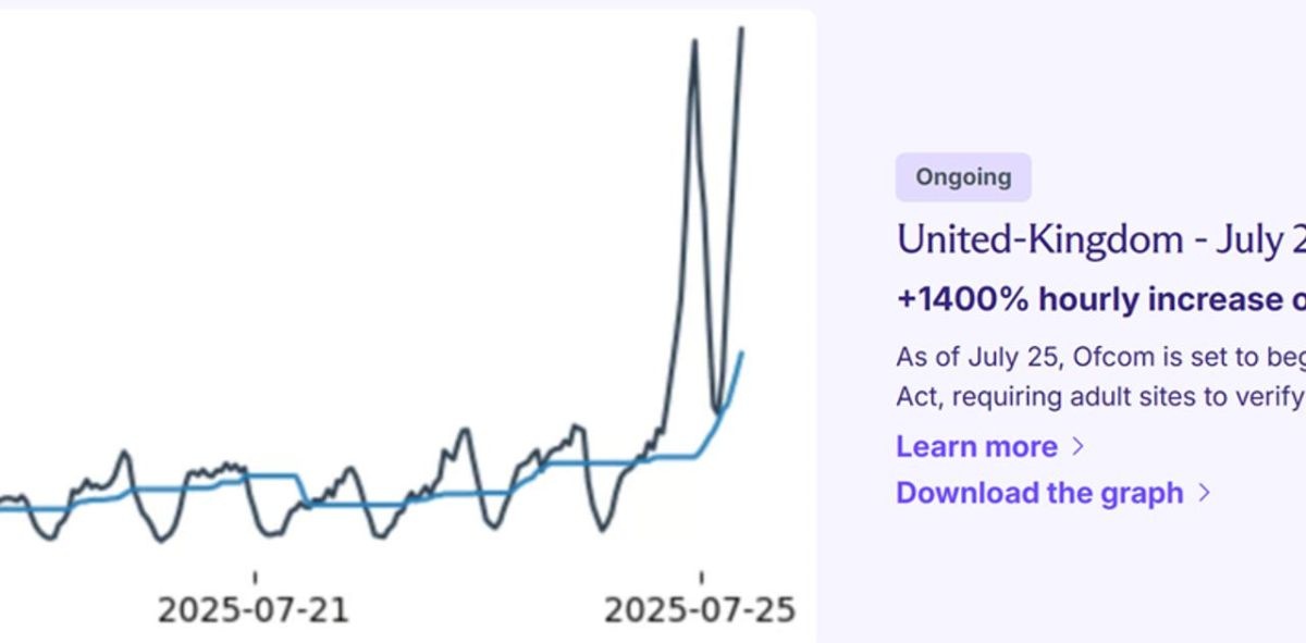 アダルトサイトへの年齢顔認証システム導入が義務化されたイギリスでは、VPNの利用が1400%大爆増!
