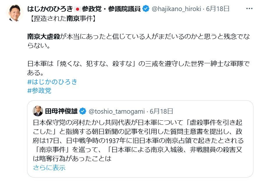 🟧党代表神谷「大東亜戦争は自衛戦争、日本はアジアを侵略なんかしてない。なぜ日本人が謝らなきゃならないの?」