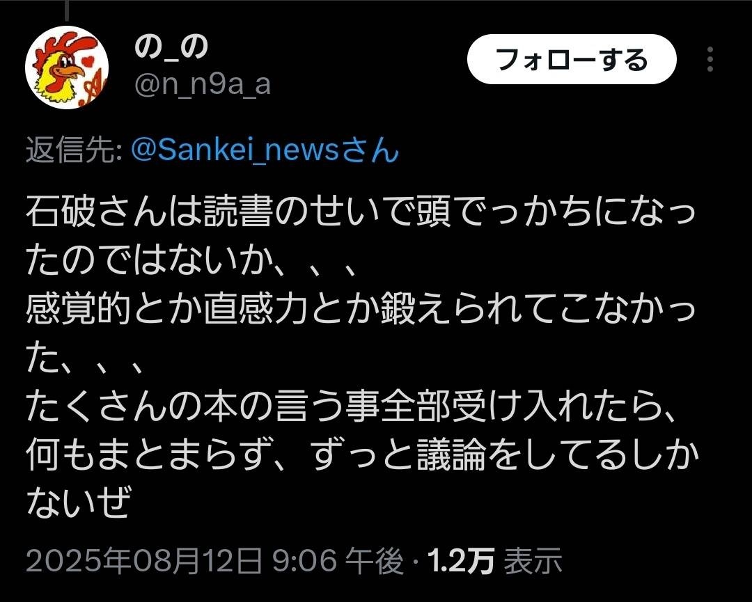 石破が頭でっかちになってるとか何言ってるんだろう(´・ω・`)