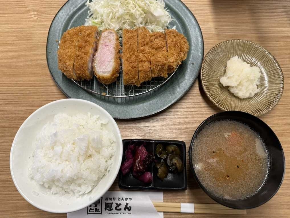 新業態「厚切りとんかつ 厚とん」では、羽釜でふっくら炊き上げたこだわりの「お米」と、銘柄豚を低温でじっくり柔らかく揚げたジューシーな「厚切りとんかつ」を提供する。